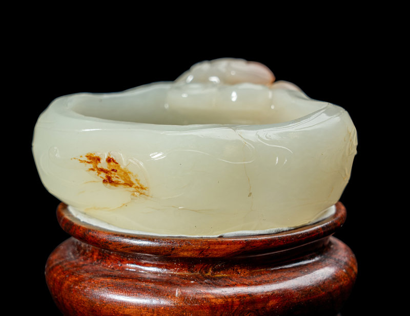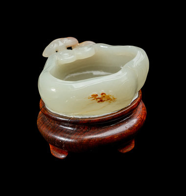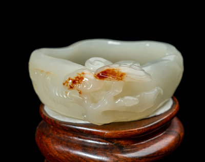 A Chinese Russet and White Jade Lingzhi-Form Water Coupe