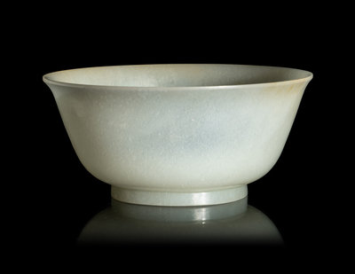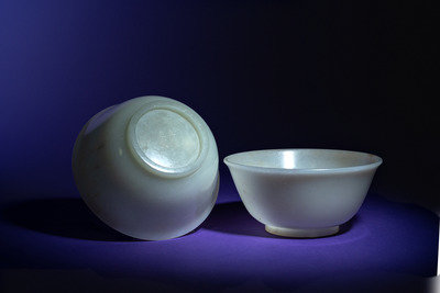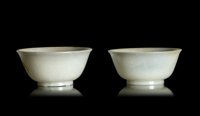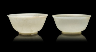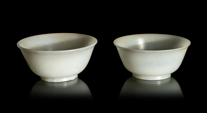 A Matched Pair of Chinese Pale Celadon Jade Bowls
