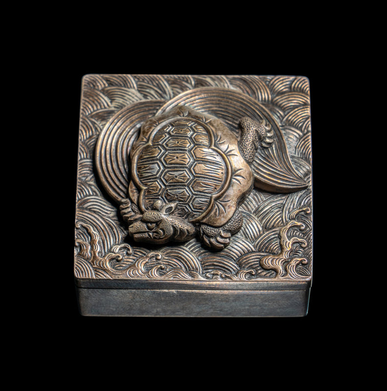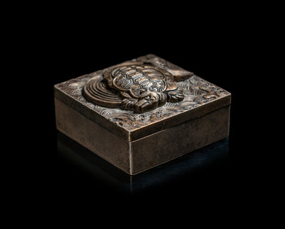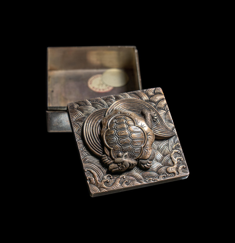 日本明治時代 千尾龜銀盒