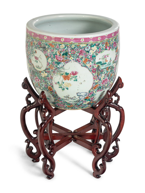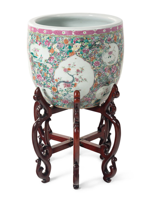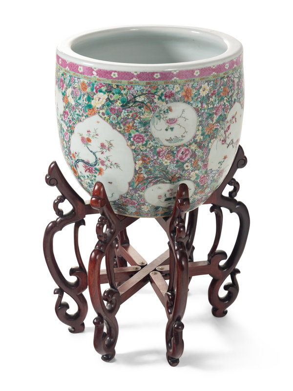 A Large Chinese Famille Rose ‘Millefleur’ Porcelain Fish Bowl