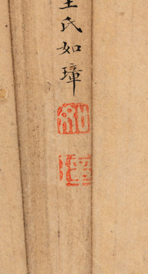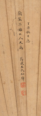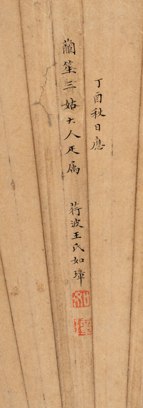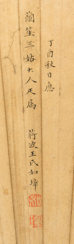 款識:丁酉(1777)秋日应兰笙三姑大人正属。荇波王氏如璋。