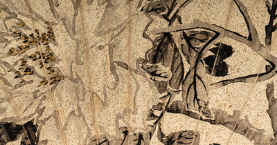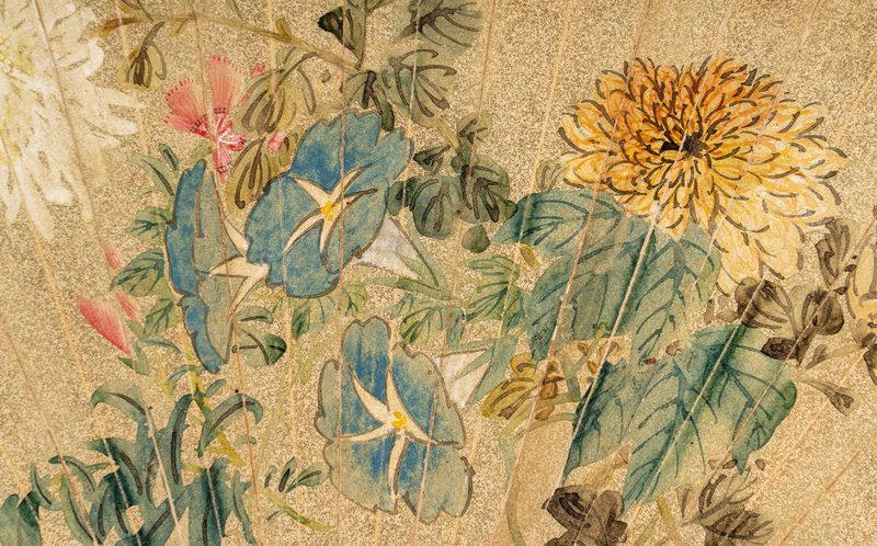 ink and color on gold-flecked paper