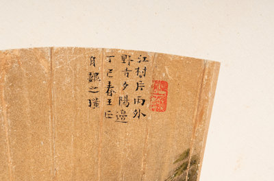 款識:江村后雨外,野寺夕陽邊。丁巳(1617)春王正自魏之璜。