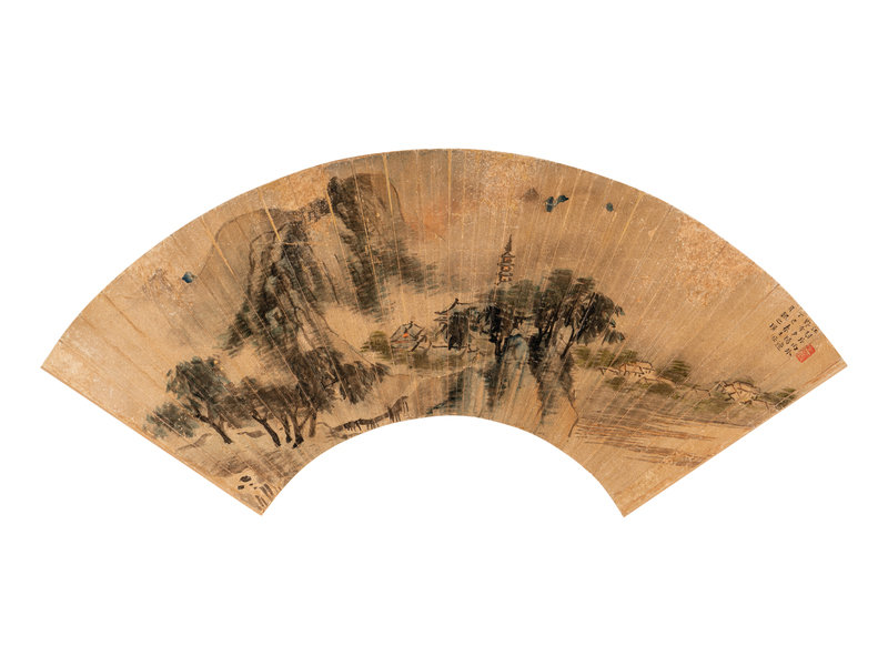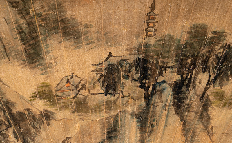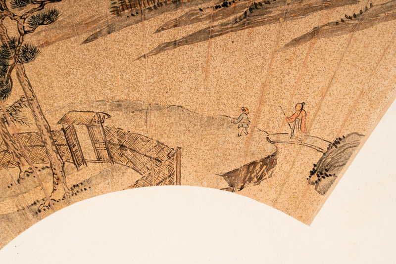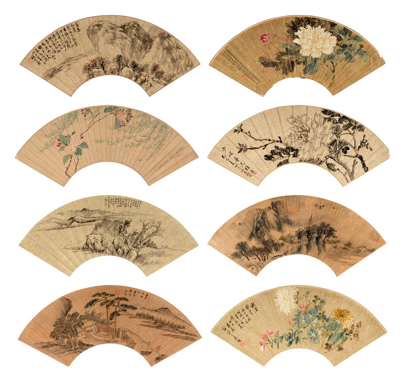Eight Chinese Folding Fan Leaves Depicting Landscape and Flowers