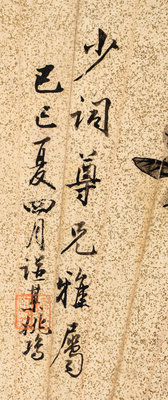 款識:少詞尊兄雅屬,己巳夏四月譜某桃塢。
