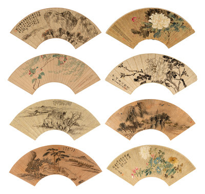山水、花鳥扇面八幅