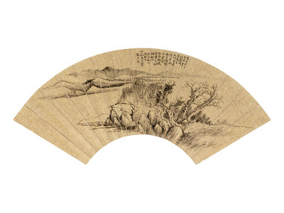 款識:嚴先生釣臺高踞山之半,舟經其下,須昂首望之,故昔人詩云江流日趨下,益見釣臺高,語頗得風人之旨。靜岩仁兄屬為作圖似正。癸未(1883)二月,胡公壽。