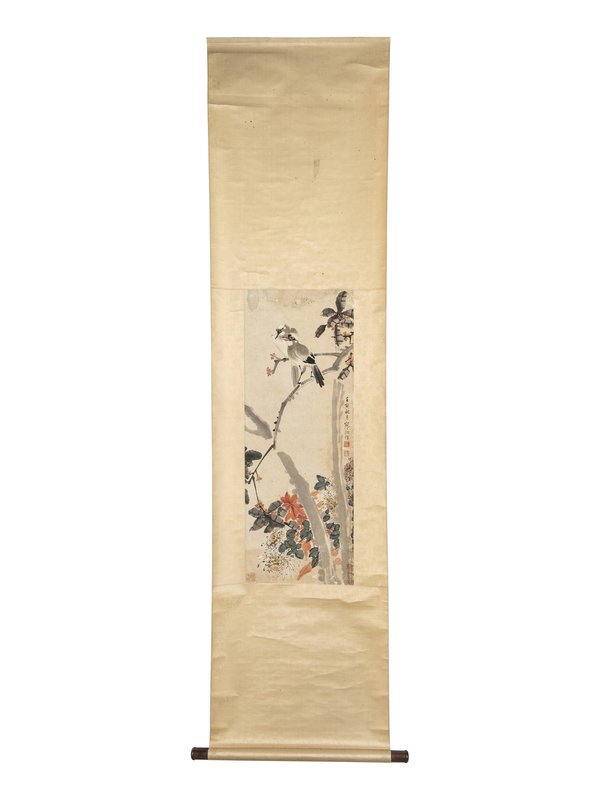 ink and color on paper, hanging scroll