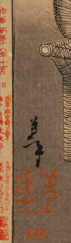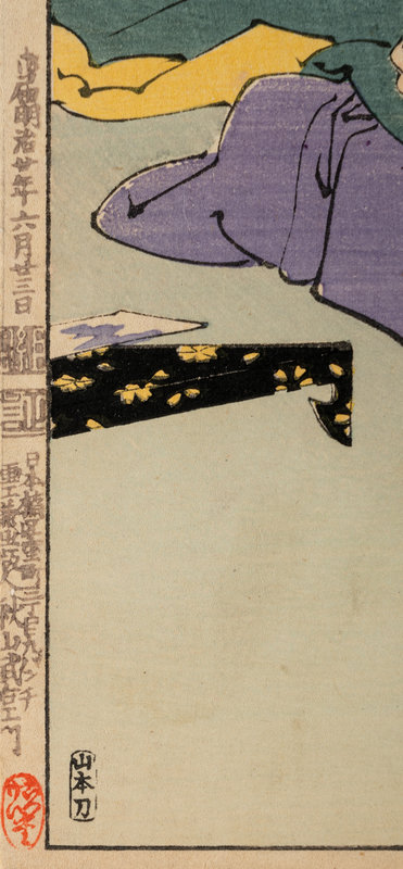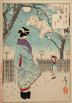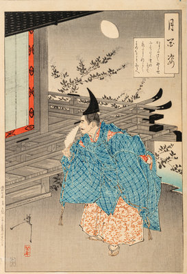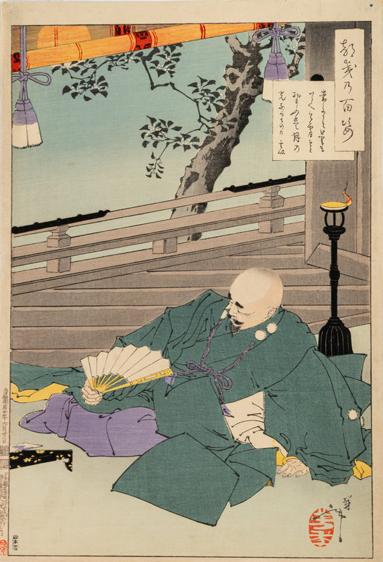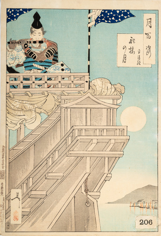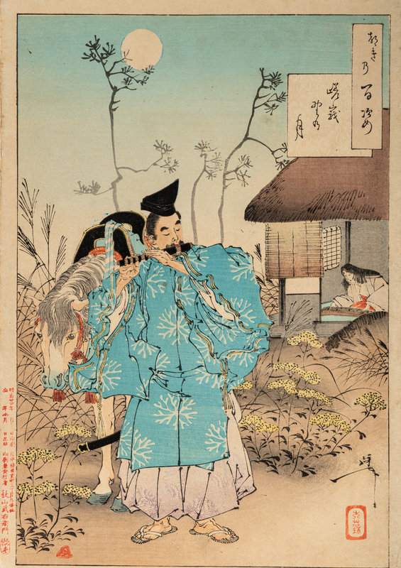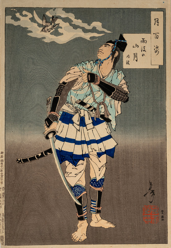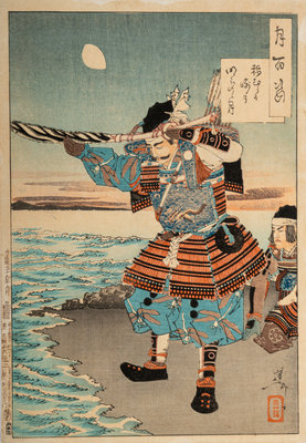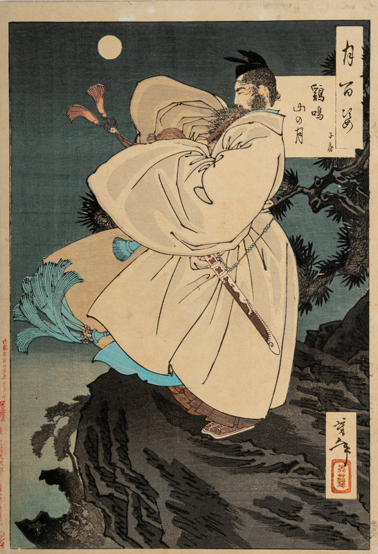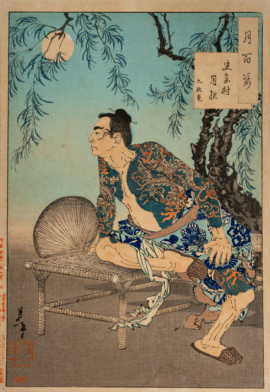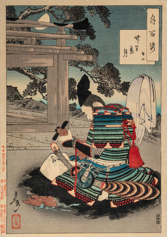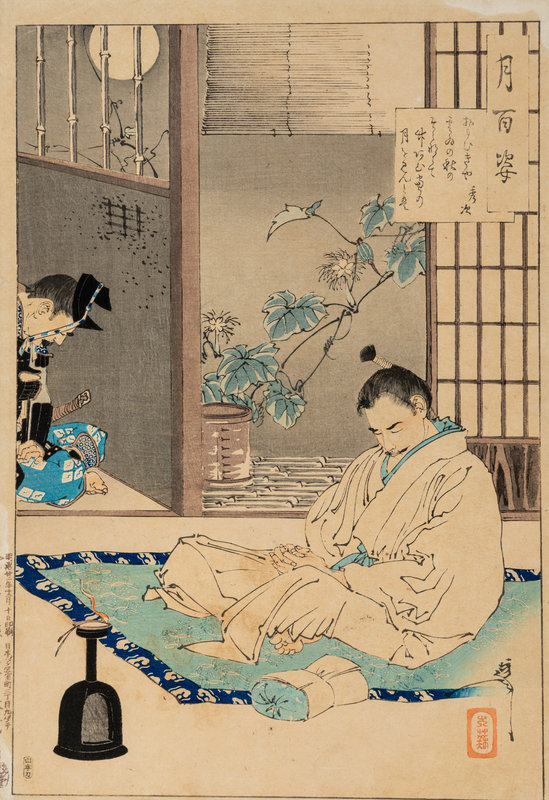 24 colored Oban tate-e wood block prints from the series Tsuki hyakushi (One hundred aspects of the moon)