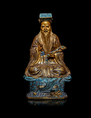 A Chinese Gilt Highlighted Robin's Egg Glazed Porcelain Figure of a Daoist Immortal