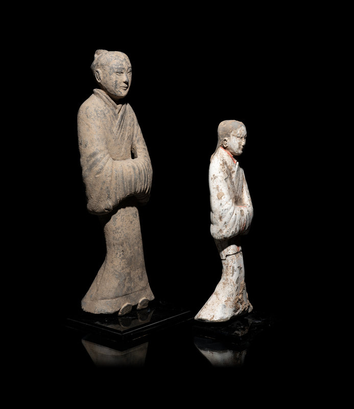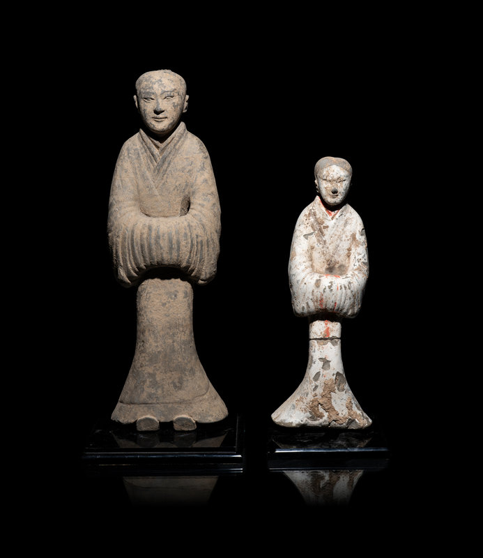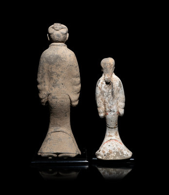 Two Chinese Painted Pottery Figures of Attendants
