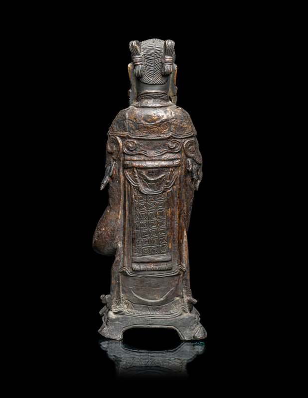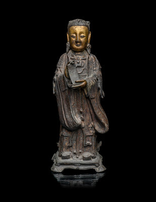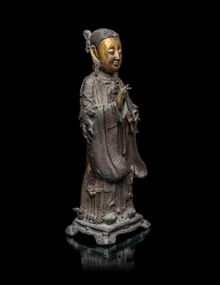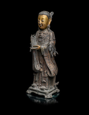 A Chinese Parcel-Gilt Bronze Figure of a Daoist Immortal, Longnv
