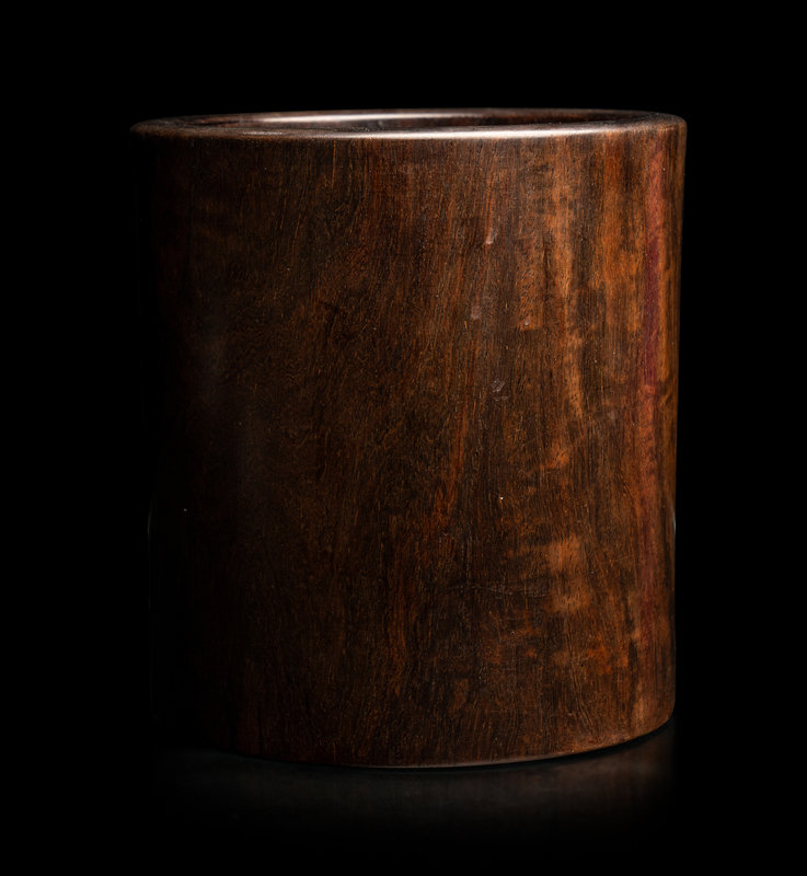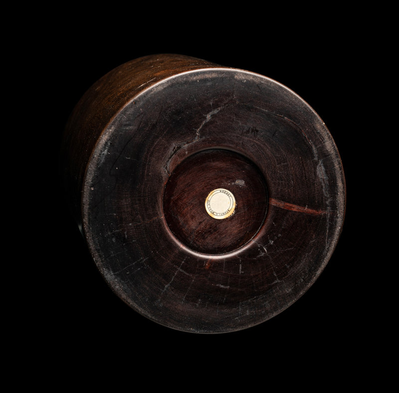of circular section, the plain sides slightly tapering to a flat circular base, the wood of an attractive dark brown color with dense grain.