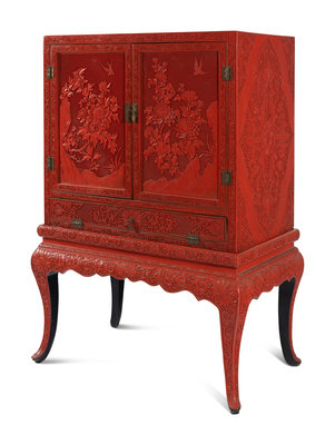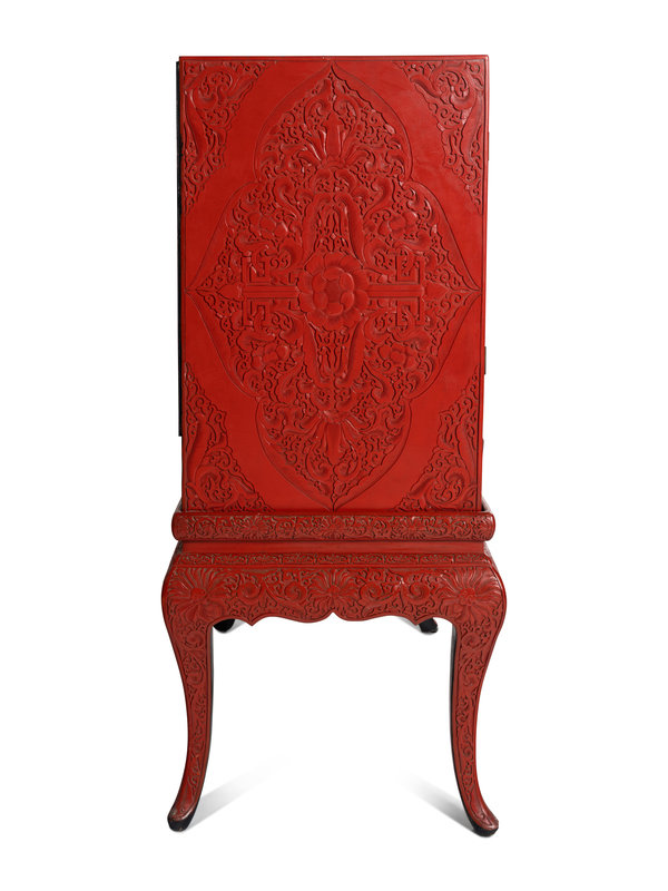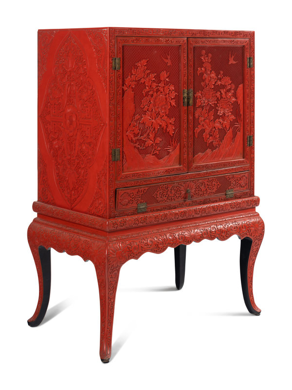 A Large Chinese Cinnabar Lacquer Chest on Stand