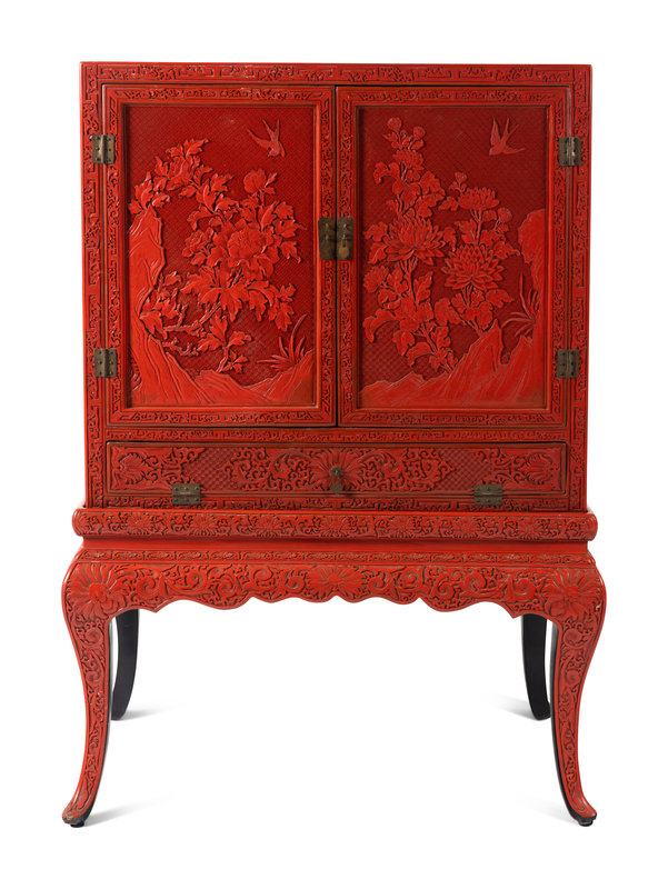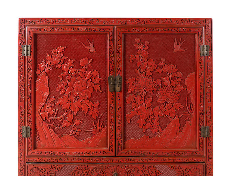 近代 雕漆牡丹菊花紋櫃