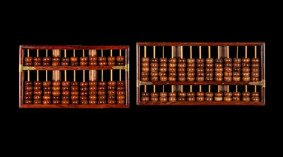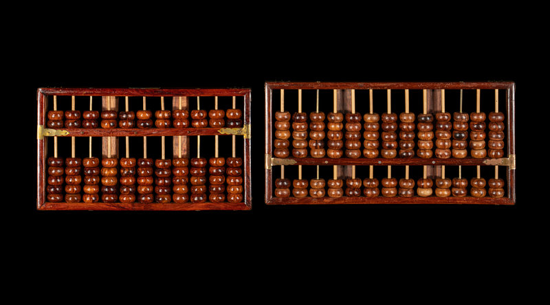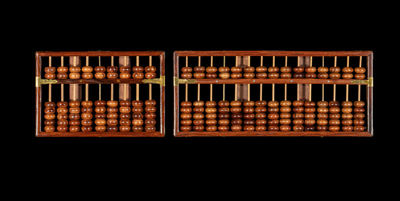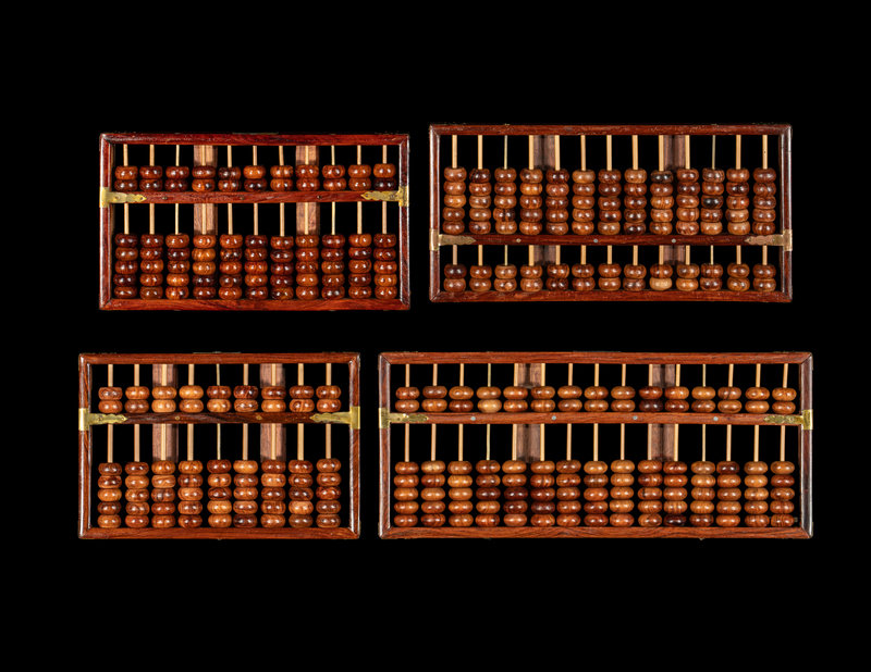 each set with compressed spherical beads on dowels within rectangular frames and gilt mounts.
