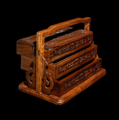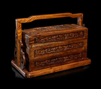 A Chinese Huanghuali Two-Tiered Picnic Box and Cover, Tihe