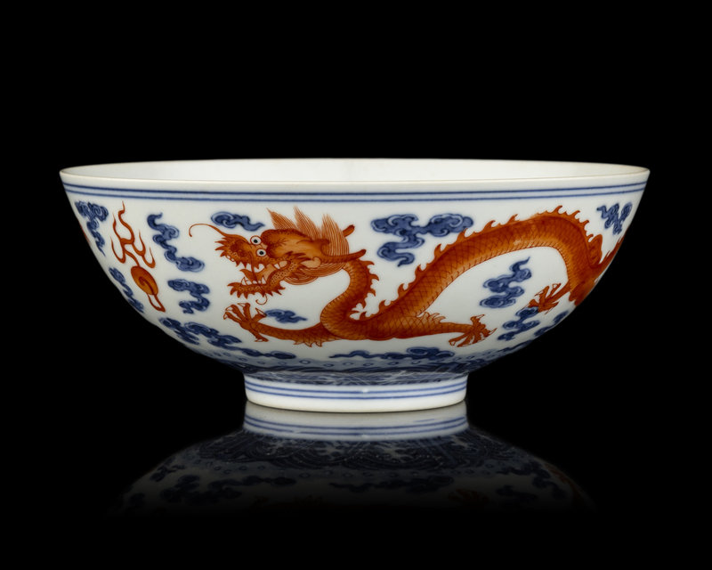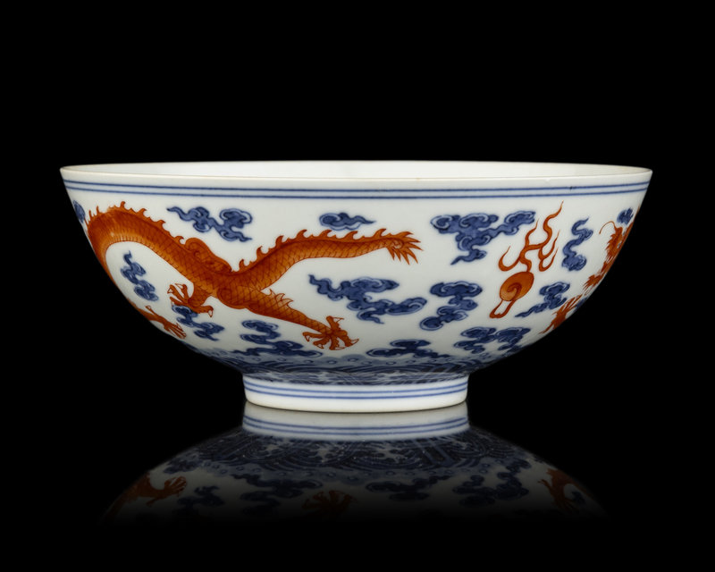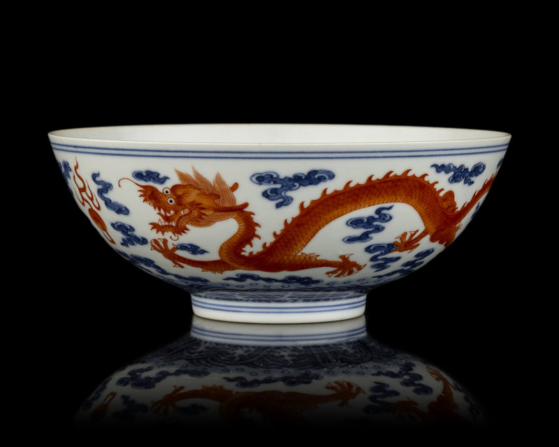A Chinese Iron Red Decorated Underglaze Blue Porcelain 'Dragon' Bowl
