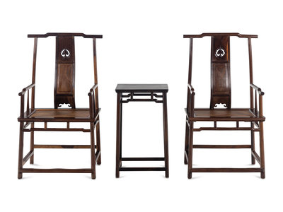 A Pair of Chinese Tielimu Official's Hat Chairs, Sichutouguanmaoyi and Matching Stand