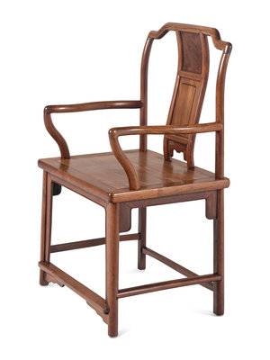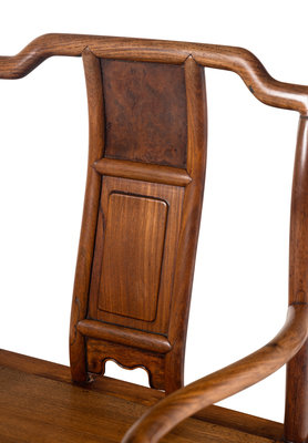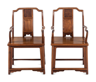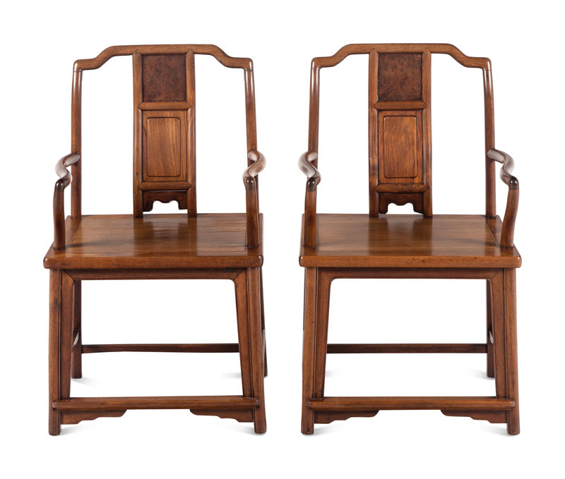 A Pair of Chinese Huanghuali and Burlwood Continuous Yoke Back Armchairs, Nanguanmaoyi
