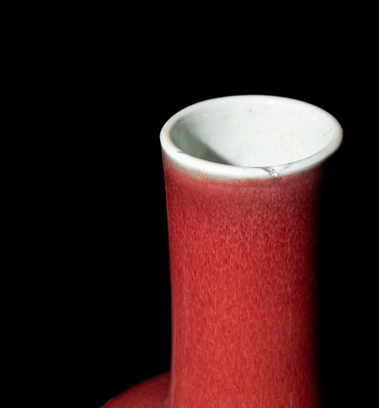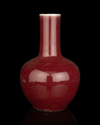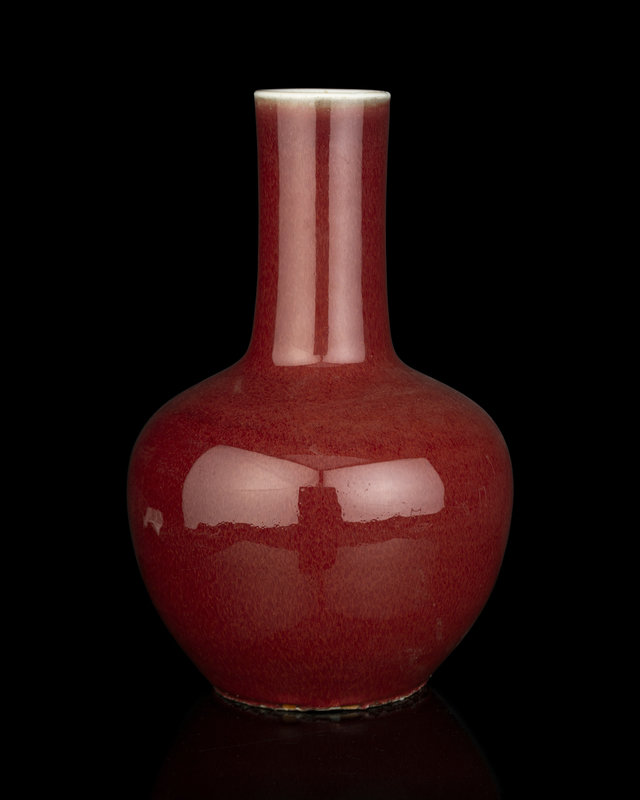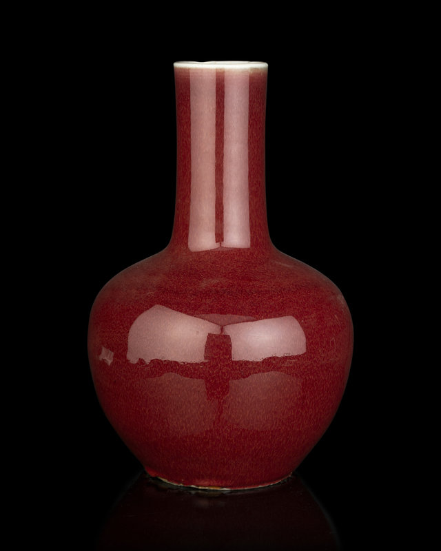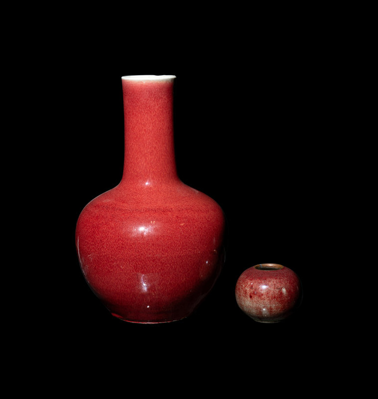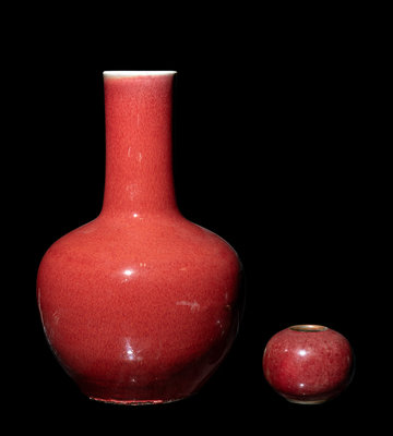 comprising a globular form water coupe, and a tianqiuping vase, both covered in lustrous copper red glaze.