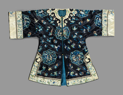 Two Chinese Blue Ground Silk Embroidered Lady's Garments