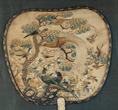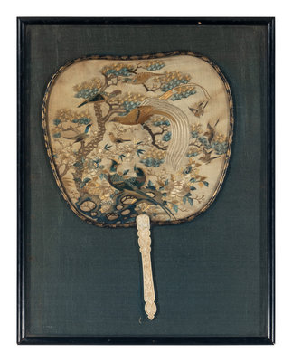 清晚期 粵綉百鳥朝鳳宮扇一柄