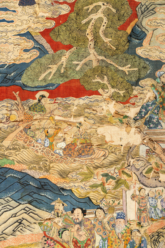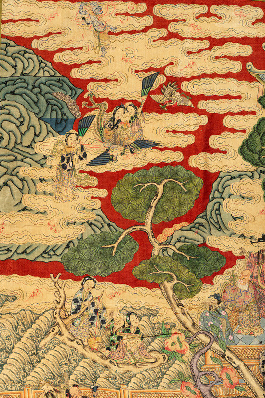 Two Large Chinese Kesi Woven Silk 'Immortal' Panels