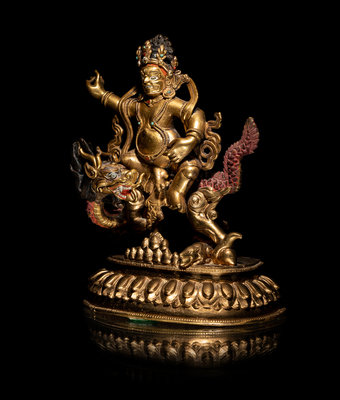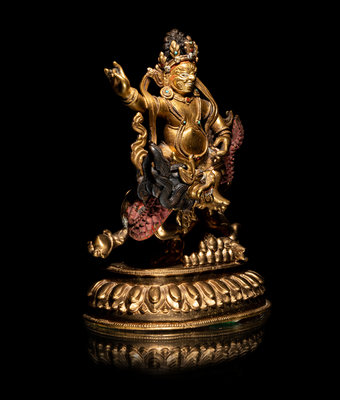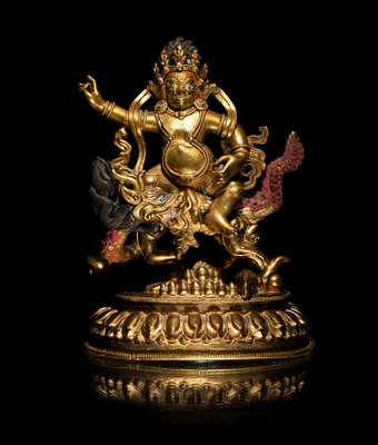 A Sino-Tibetan Gilt Bronze Figure of Kubera