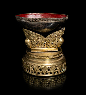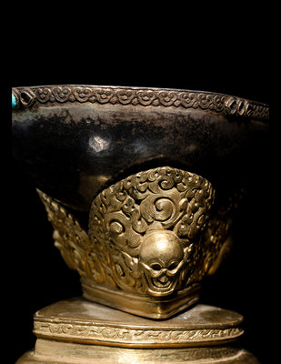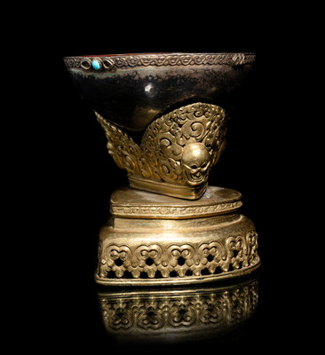 十九世紀或更早 藏傳佛教銅鎏金嵌寳嘎巴拉碗