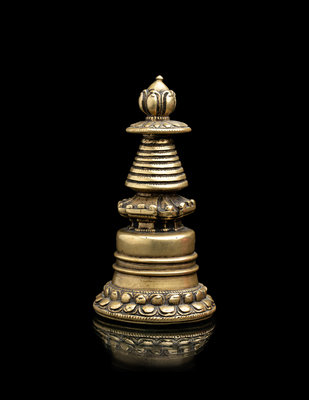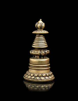 A Small Tibetan Bronze Pala-Style Model of a Stupa