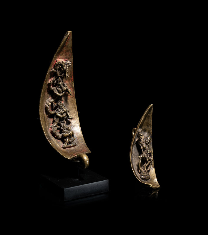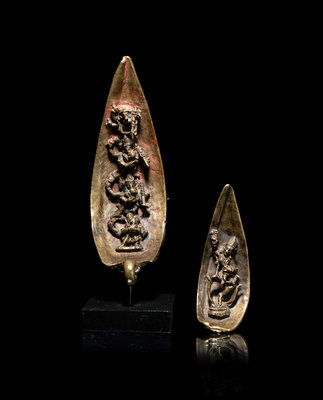 Two Tibetan Bronze Mandala Leaves