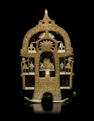 An Indian Silver Inlaid Brass Jain Shrine