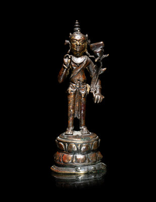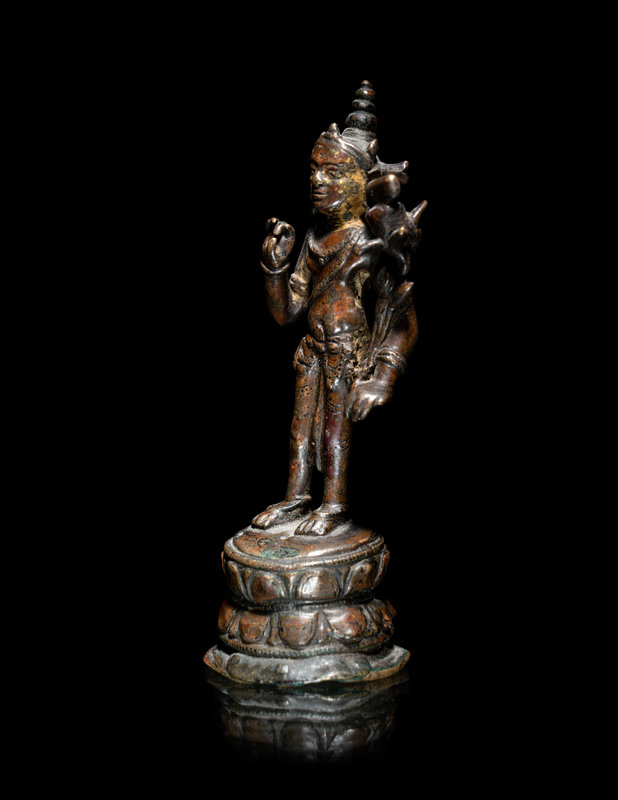 A Nepalese Parcel-Gilt Bronze Figure of Standing Avalokiteshvara