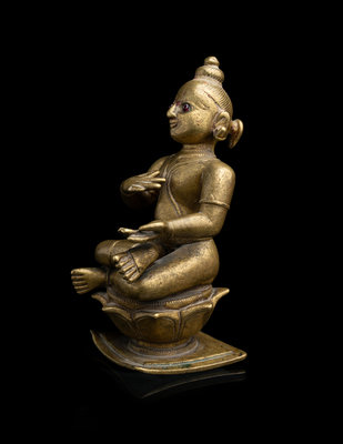 An Indian Orissa Bronze Figure of Seated Vishnu