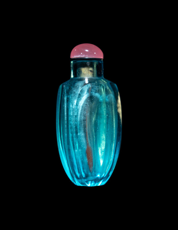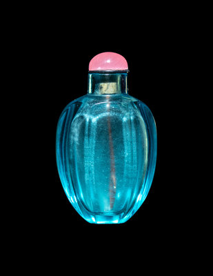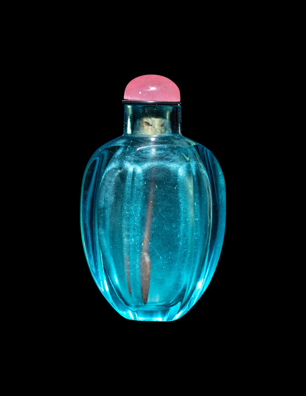 A Chinese Aquamarine Glass Faceted Snuff Bottle