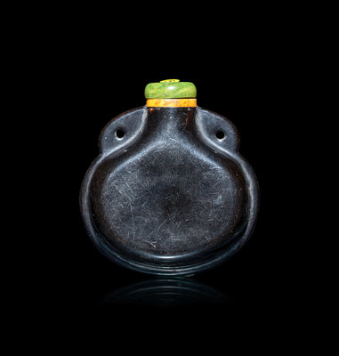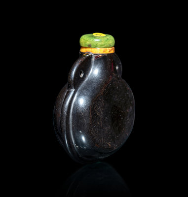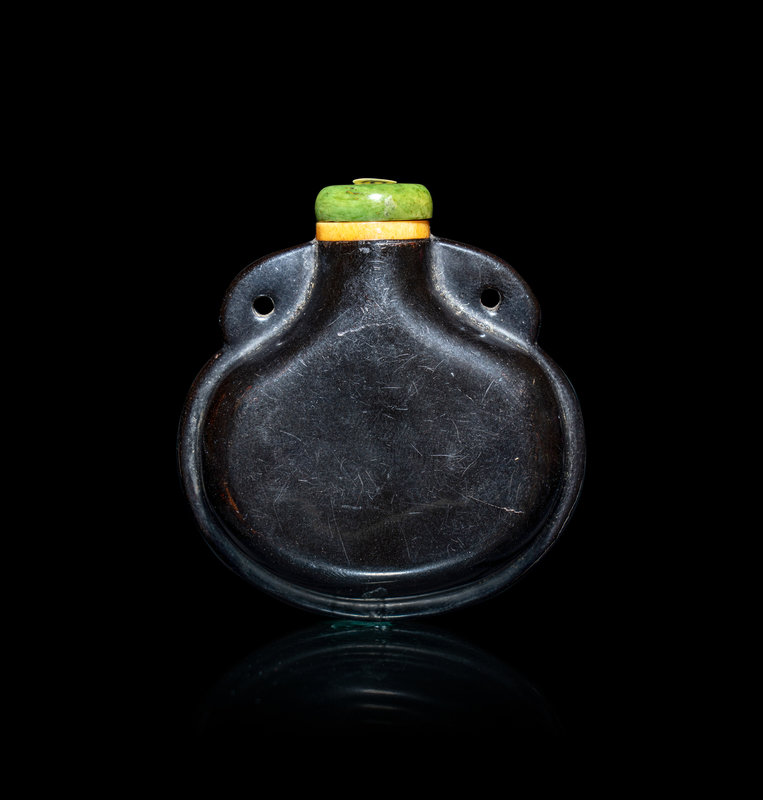 1780-1850 黑漆木雕荷包式鼻烟壺