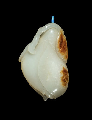 A Chinese Russet and White Jade ‘Magnolia’ Snuff Bottle