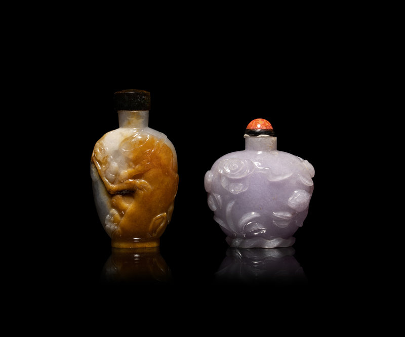 Two Chinese Jadeite Snuff Bottles