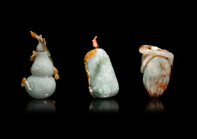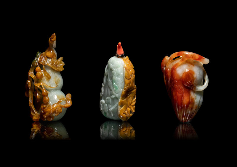 comprising a gourd-form example, matching stopper, a melon-form example, red coral stopper and a hand citron-form example.