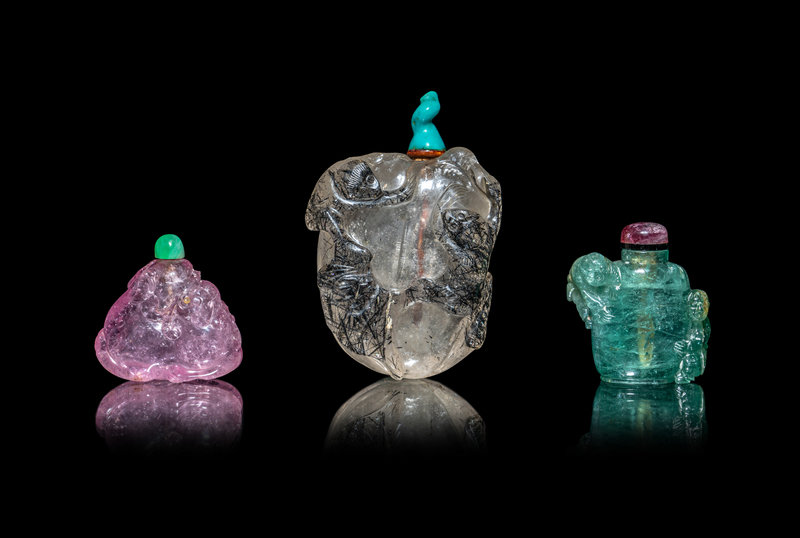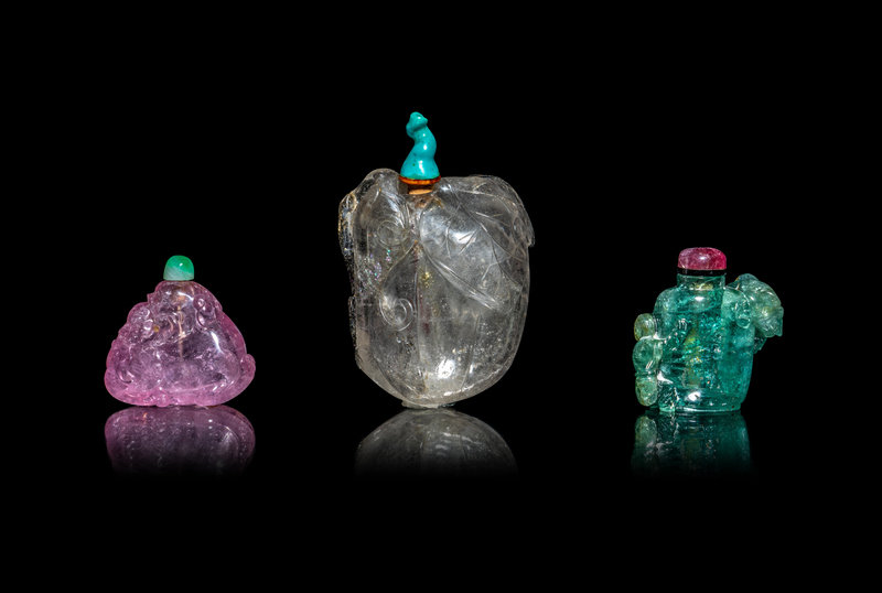 晚清-民國 碧璽、海藍寶、水晶鼻烟壺三支
