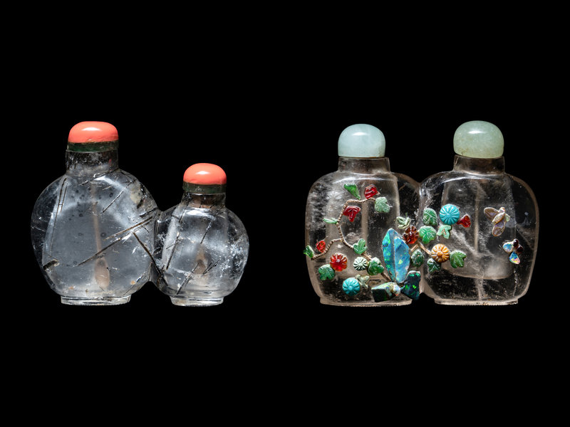 清晚期 水晶雙聯鼻烟壺兩支