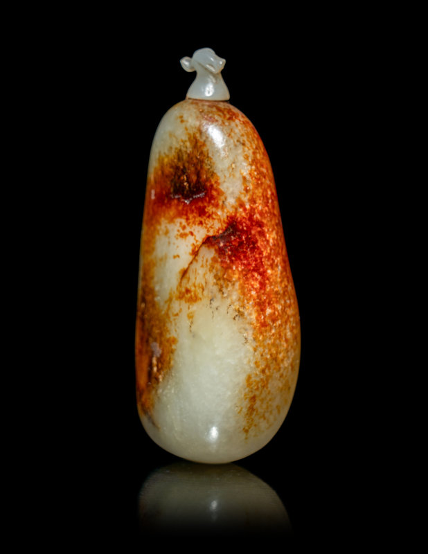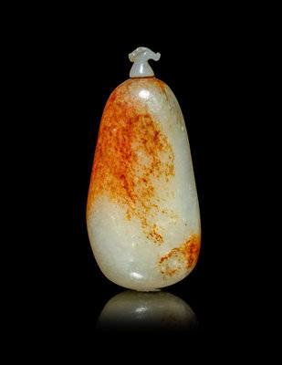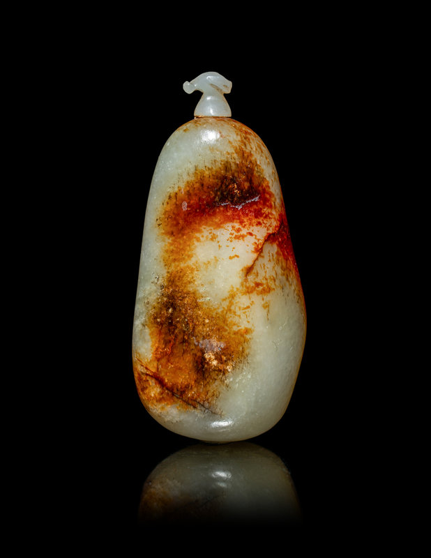of natural pebble form, the stone softly polished to highlight the attractive russet skin, jade stopper.