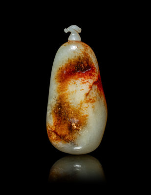 A Chinese Russet and Pale Celadon Jade Pebble-Form Snuff Bottle