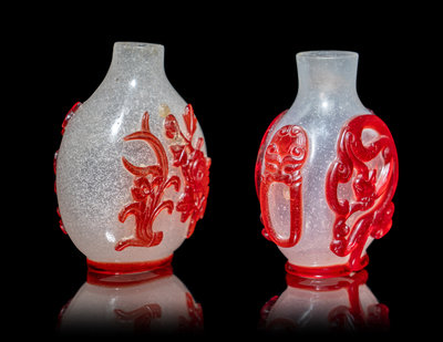 清 雪霏地套寶石紅料鼻烟壺兩支