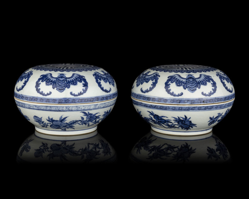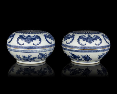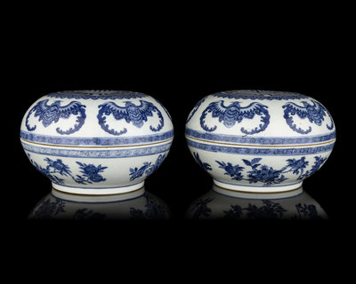 A Pair of Chinese Blue and White Porcelain Covered Boxes
