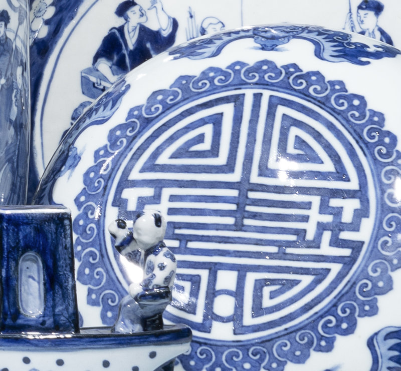 清光緒 青花五福捧壽捧盒