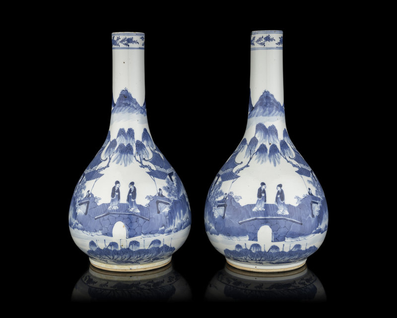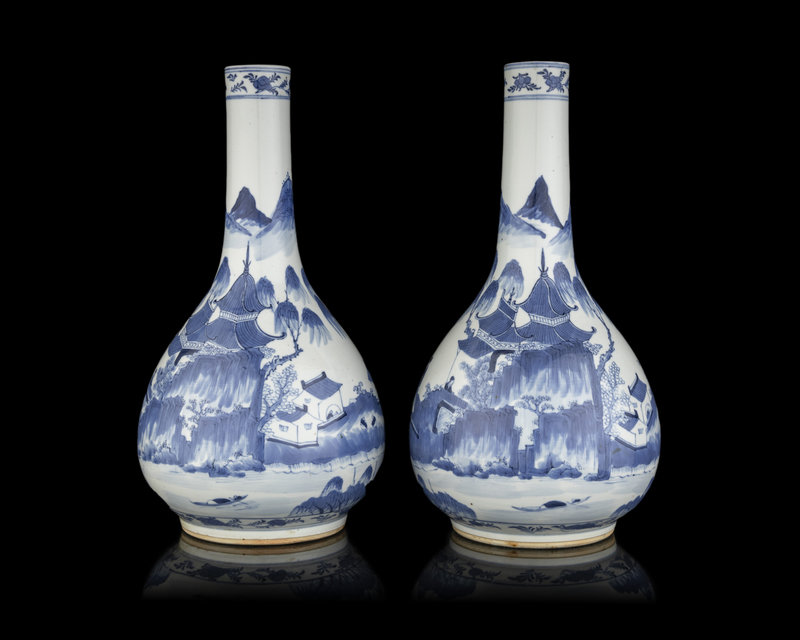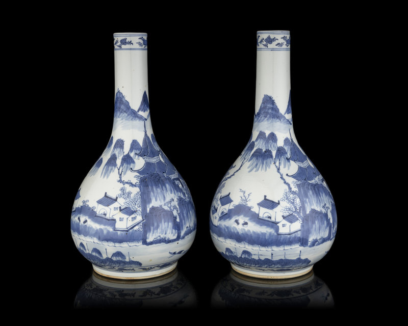 A Pair of Chinese Blue and White Porcelain Bottle Vases