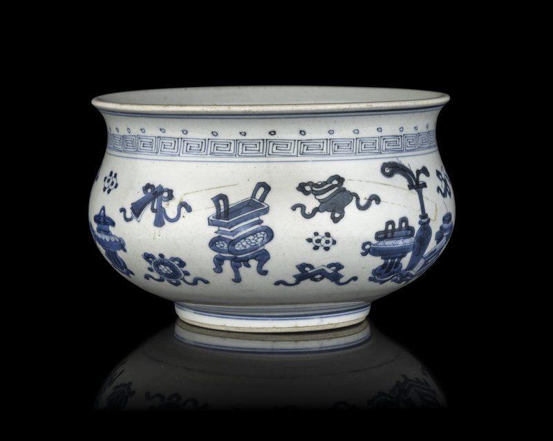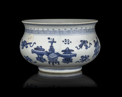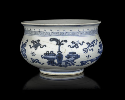 A Chinese Blue and White 'Bogu' Porcelain Censer