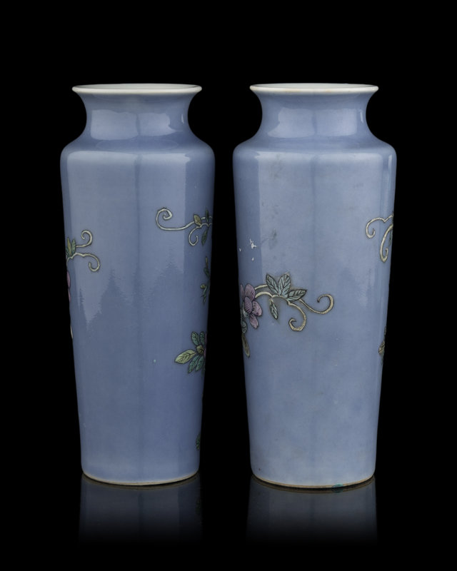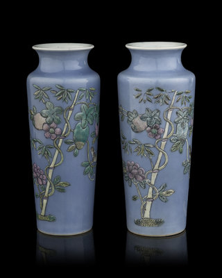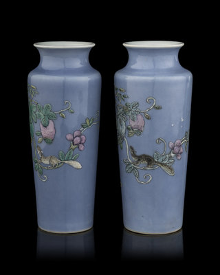 A Pair of Chinese Light Lavender Ground Famille Rose Porcelain Sleeve Vases
